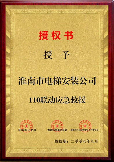 授予淮南市電梯安裝公司110聯(lián)動應(yīng)急救援