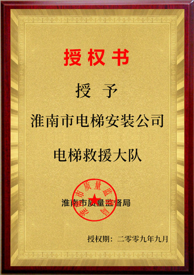 授予淮南市電梯安裝公司電梯救援大隊(duì)