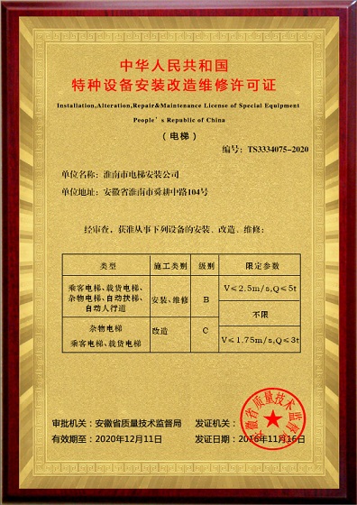 您好,歡迎訪問(wèn)淮南市電梯安裝公司官方網(wǎng)站!