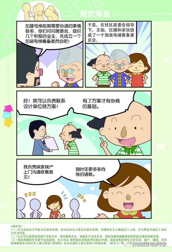 業(yè)主可以尋求居委會等基層組織進行協(xié)商,電梯籌備委員會。