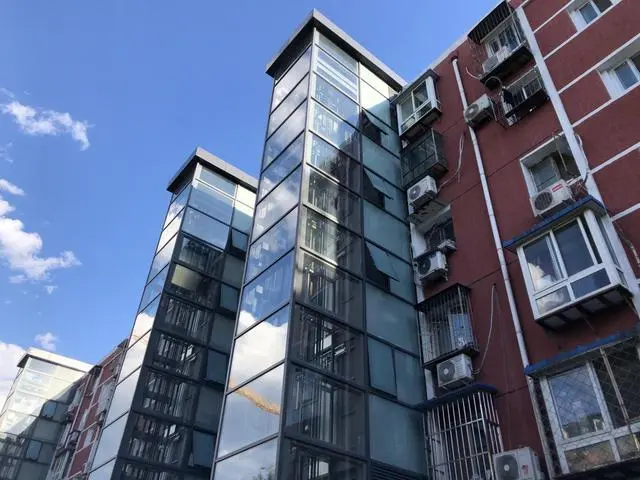 因為新買的電梯都是裝在大樓外面的,以后還得天天用。